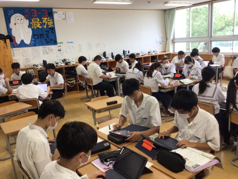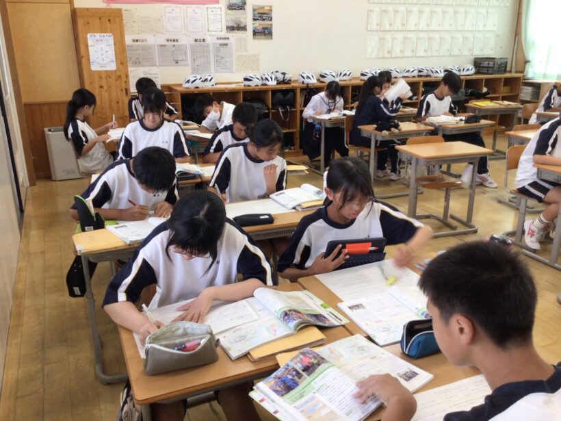 【2年生社会科】テスト対策の復習をしています。ポイントがわかりにくい人は先生と学習して、自分で取り組める場合は一人、またはペア等での学習を自己選択して学びの場を調整する力を育成中。