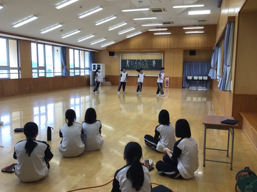 【2年生保健体育科】本日ダンス発表会を行っていました。みんな少し緊張した顔でしたが、格好よく踊っていました。さすが令和の子達です。😃私とはリズム感が違います。🕺