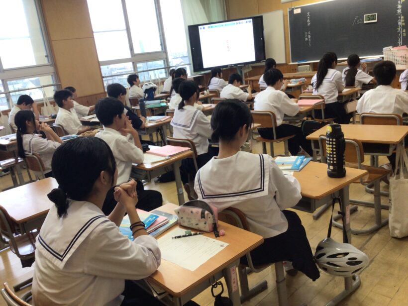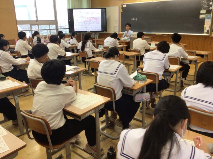 【1年生理科】テスト返却後に問題の解説を聞いています。テストは得点だけでなく、自分が分からない、又は足らないところを知る良い機会です。自分でそのことに向き合うのは少し力が必要になってきますが、その壁に挑戦すると必ずパワーアップしていきます。