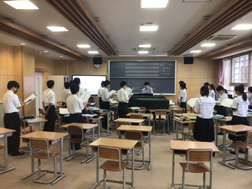 【2年生音楽科】「翼をください」を歌った後、「LEMON」米津さんの曲を合唱していました。今どきだなあと驚きました。この曲は私も大変好きなので生徒の皆さんの歌声に聞き入ってしまいました。