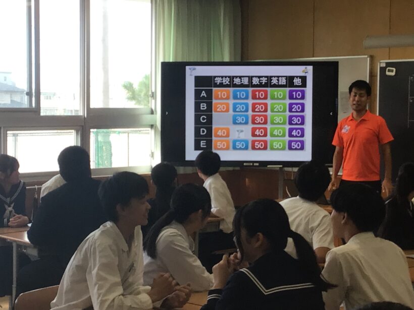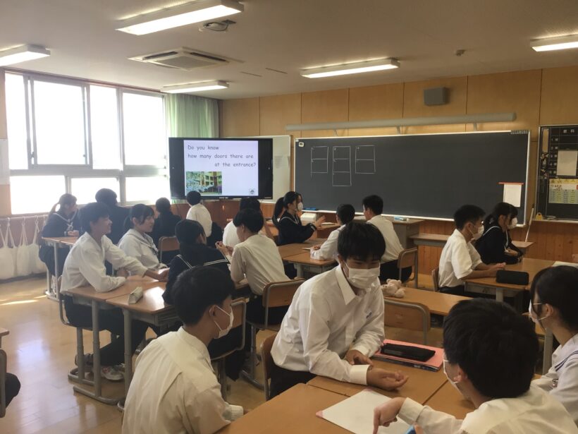 【3年生英語科】「学校、地理、数字、英語、他」のジャンルから選んで英語の問題にチャレンジしていました。グループで話し合い、学習した文法を使い、英語を身近に感じるようになればいいですね。