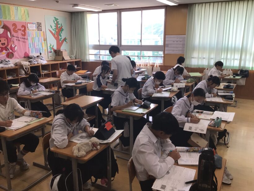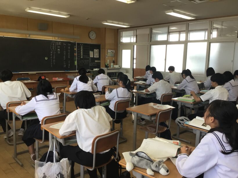 【2年生国語科】めあて「黄金の扇風機、サハラ砂漠の茶会の2つの文章を読んで筆者の考えをまとめよう」の学習です。「美とは何か」を異なる視点から考える教材ですが、「美の役割」「芸術の意味」について自分の体験や価値観と結びつけて考えることができたでしょうか?