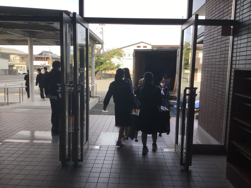 保護者の皆さんお忙しいところ、朝から荷物を届けにきていただきありがとうございます。