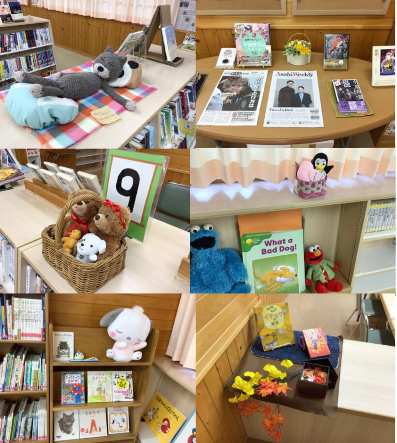 【図書室より】図書室は可愛いディスプレイがたくさんで、この場所にいるだけで心が癒されます。ぜひ皆さん図書室にどうぞ。イベントも11月10日から始まりますよ。