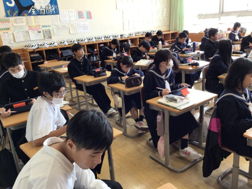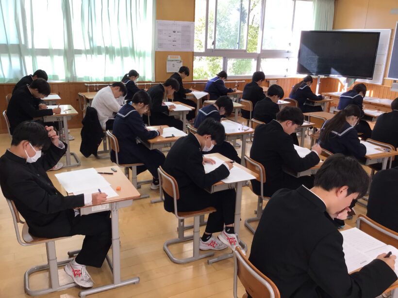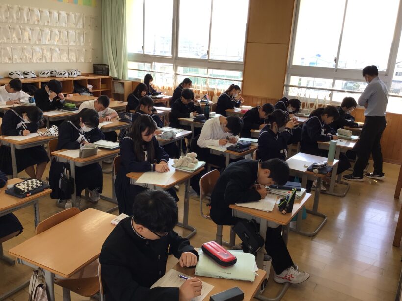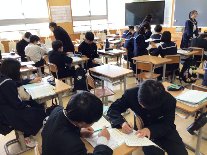 【3年生復習テスト】みんな真剣に取り組んでます。うっかりミスをしないように見直しも大切に。